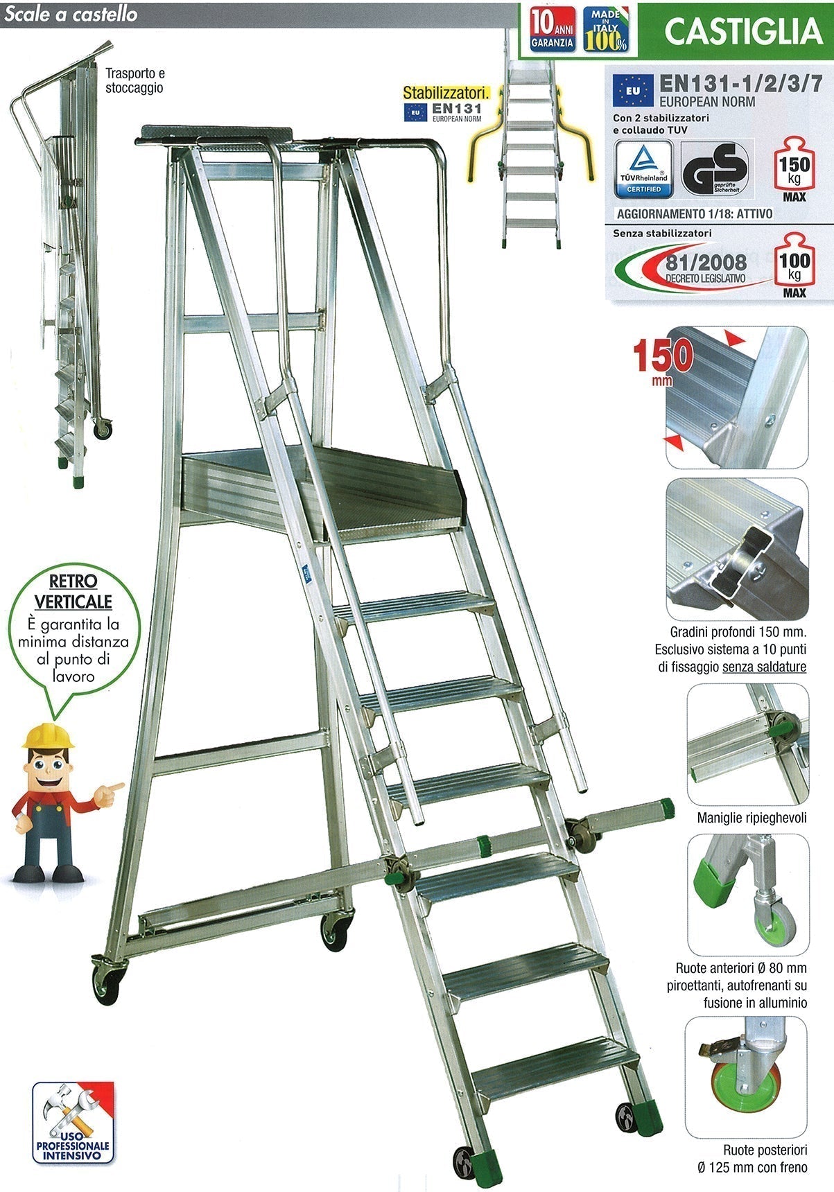 CASTIGLIA è scala a castello in alluminio su ruote.